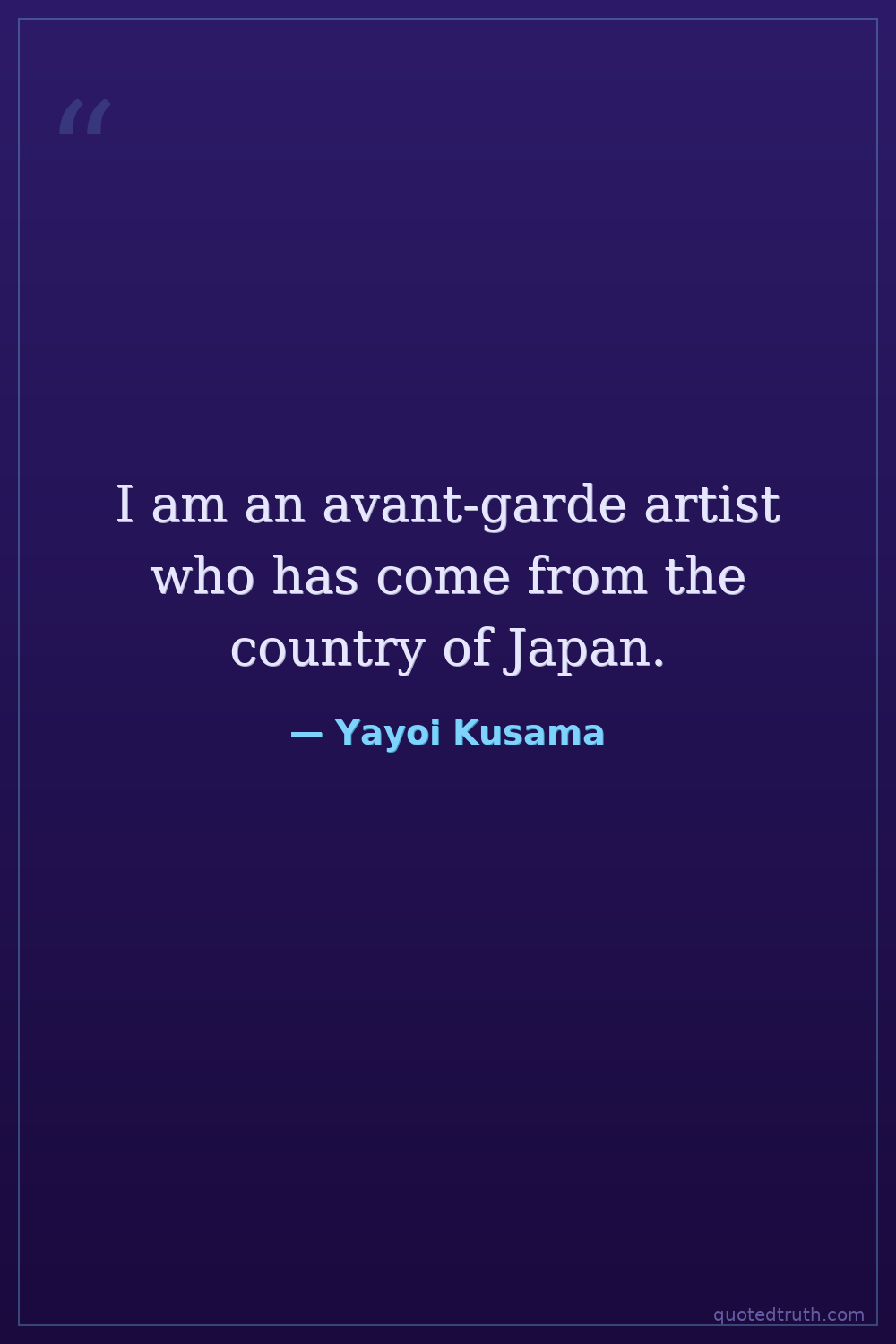 I am an avant-garde artist who has come from the country of Japan.