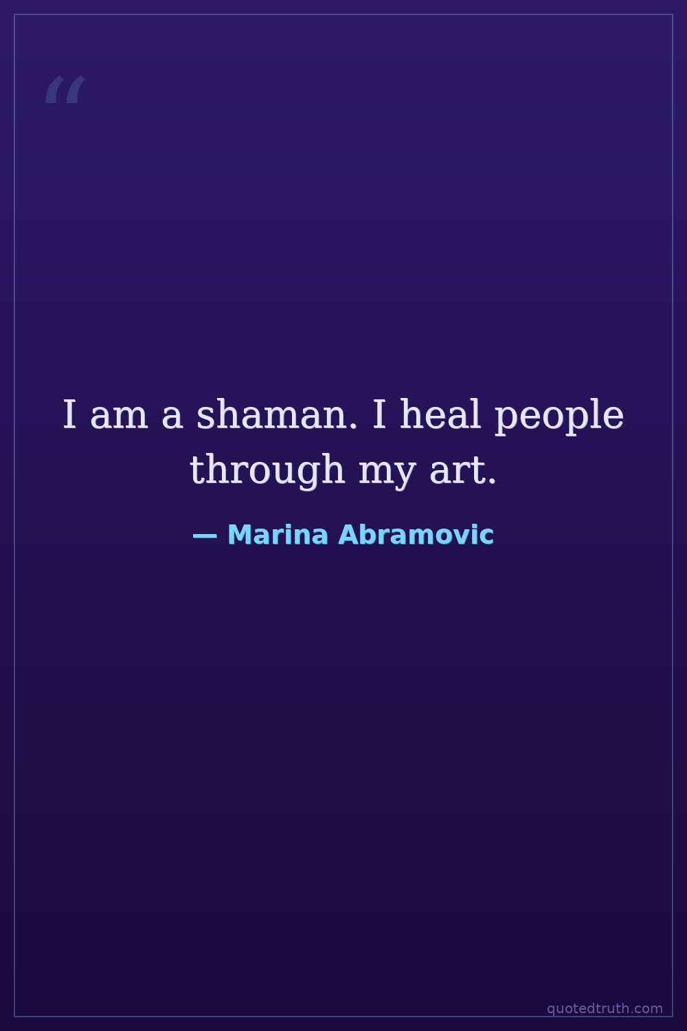 I am a shaman. I heal people through my art.