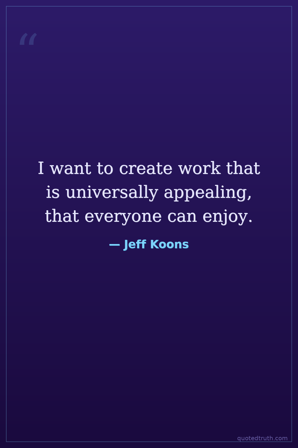 I want to create work that is universally appealing, that everyone can enjoy.