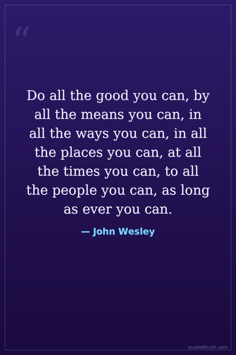 Do all the good you can, by all the means you can, in all the ways you can, in all the places you can, at all the times you can, to all the people you can, as long as ever you can.