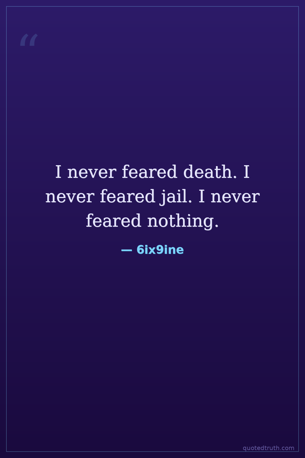 I never feared death. I never feared jail. I never feared nothing.