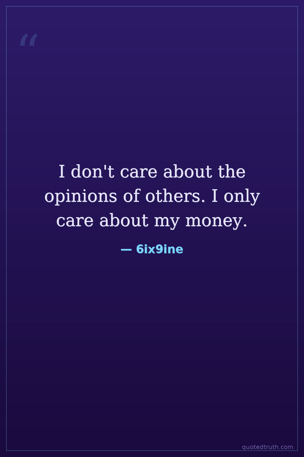 I don't care about the opinions of others. I only care about my money.