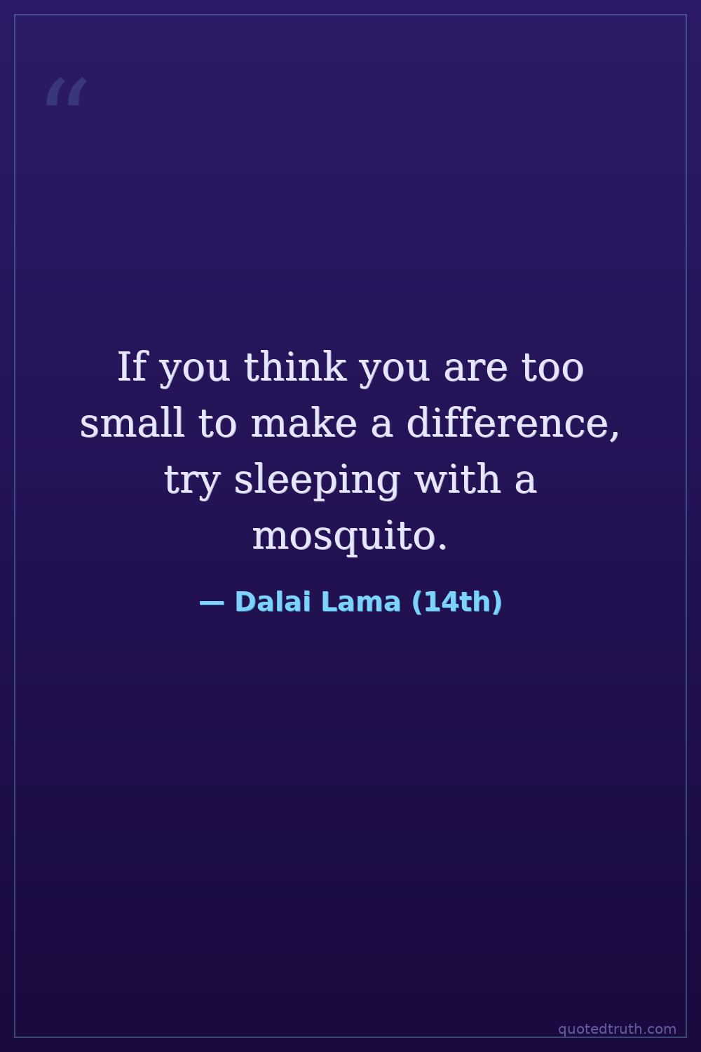 If you think you are too small to make a difference, try sleeping with a mosquito.