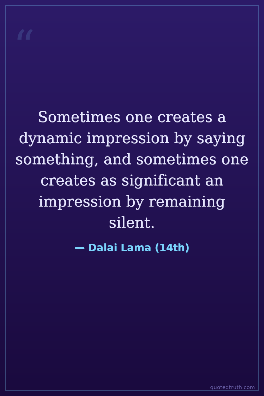 Sometimes one creates a dynamic impression by saying something, and sometimes one creates as significant an impression by remaining silent.