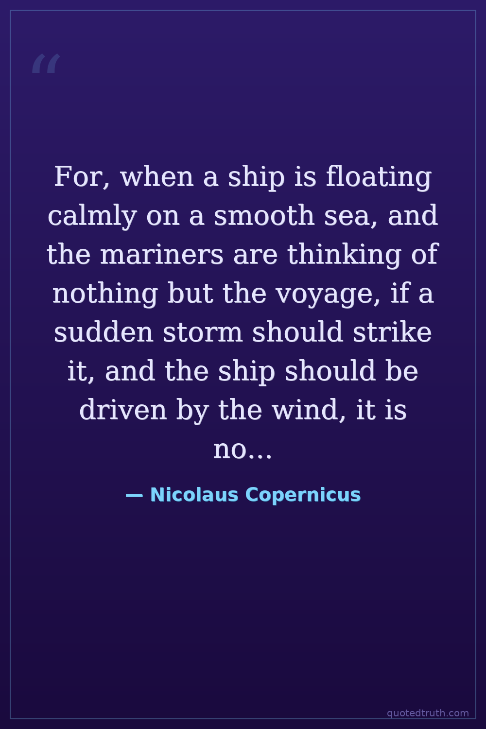 For, when a ship is floating calmly on a smooth sea, and the mariners are thinking of nothing but the voyage, if a sudden storm should strike it, and the ship should be driven by the wind, it is not the ship which is moving, but the sea.