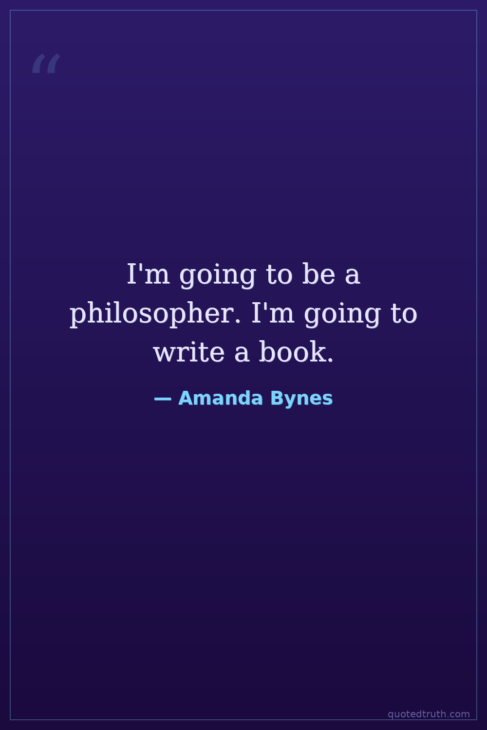 I'm going to be a philosopher. I'm going to write a book.