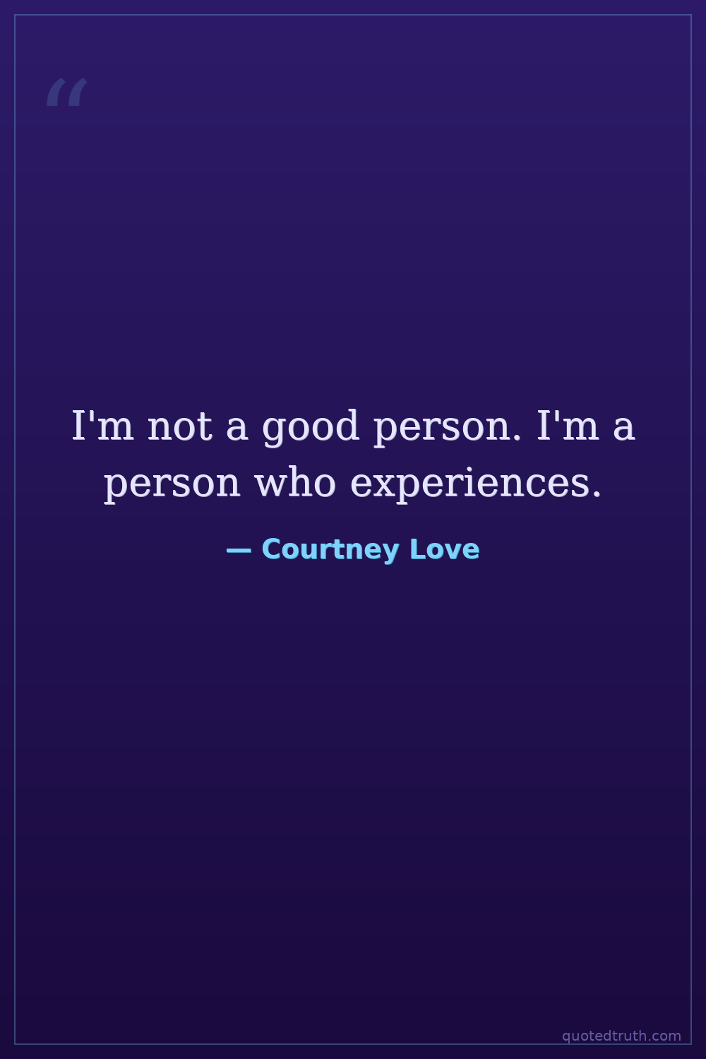 I'm not a good person. I'm a person who experiences.