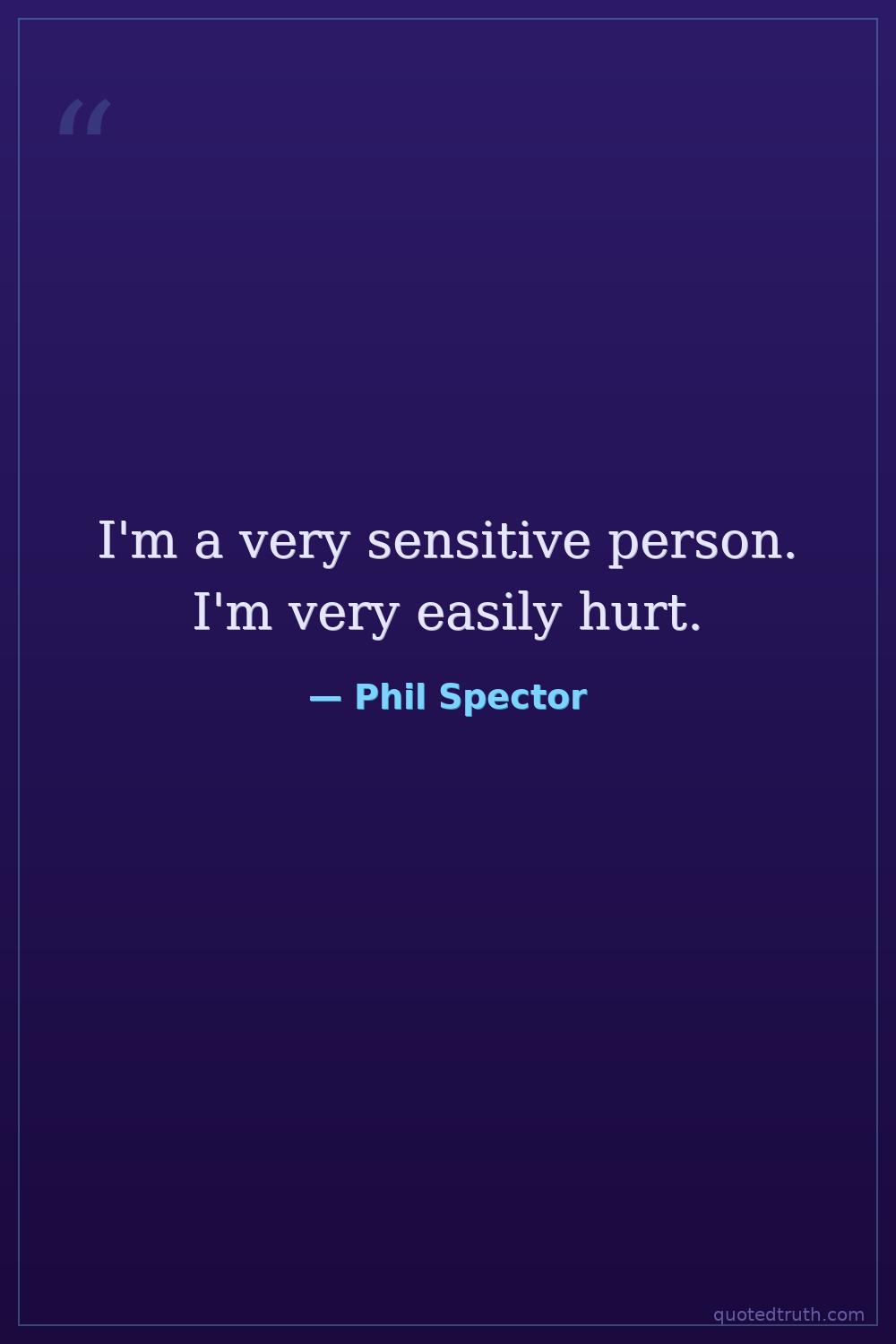 I'm a very sensitive person. I'm very easily hurt.