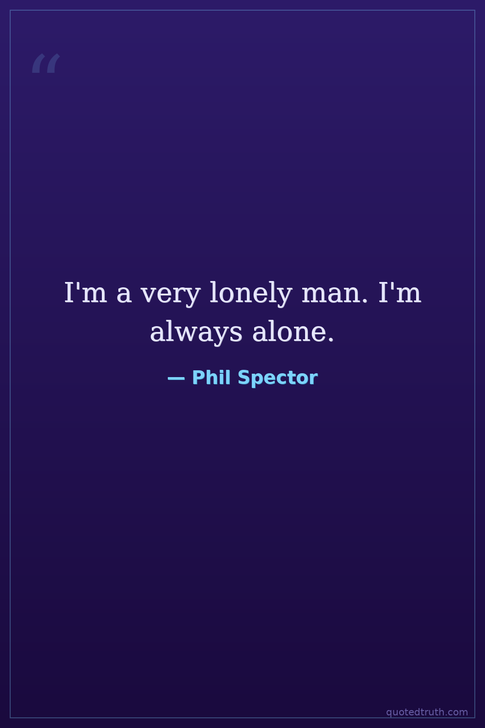 I'm a very lonely man. I'm always alone.
