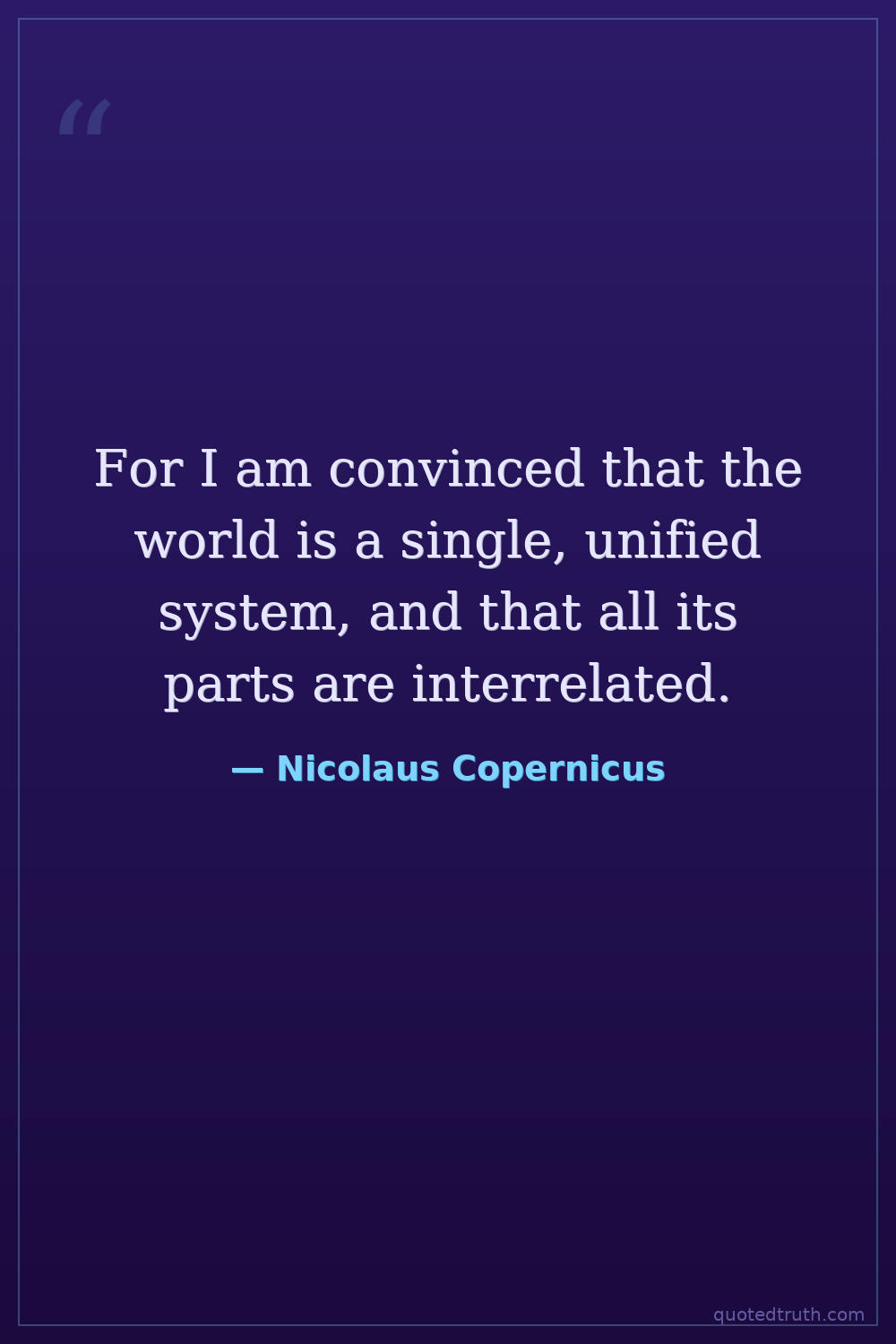 For I am convinced that the world is a single, unified system, and that all its parts are interrelated.