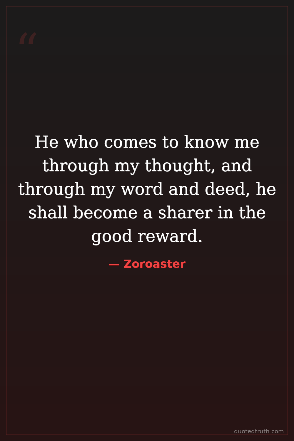 He who comes to know me through my thought, and through my word and deed, he shall become a sharer in the good reward.
