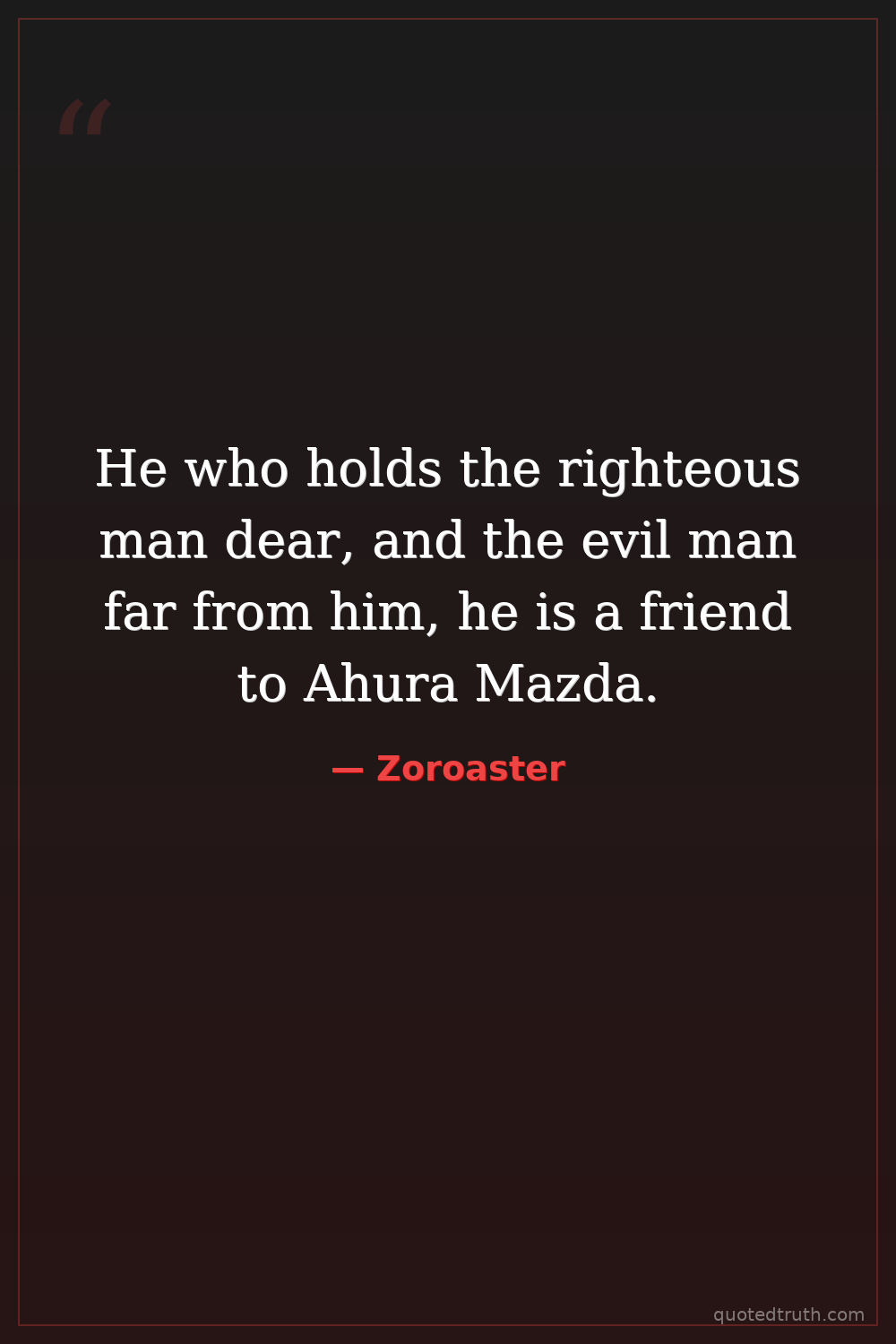 He who holds the righteous man dear, and the evil man far from him, he is a friend to Ahura Mazda.