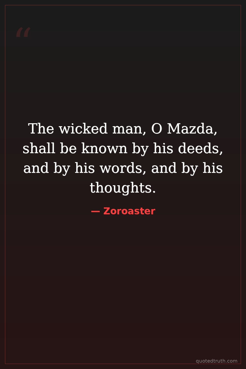 The wicked man, O Mazda, shall be known by his deeds, and by his words, and by his thoughts.