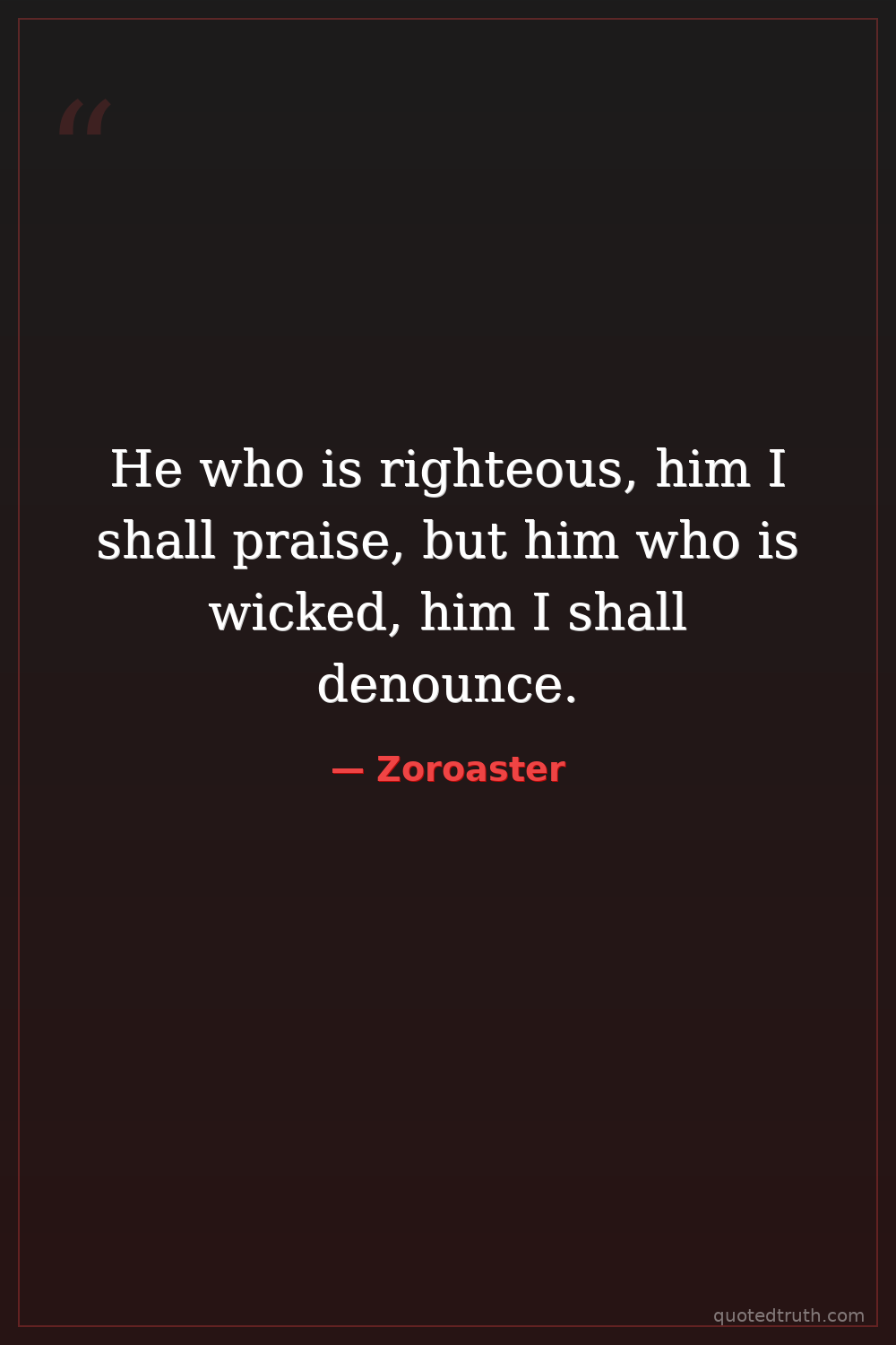 He who is righteous, him I shall praise, but him who is wicked, him I shall denounce.