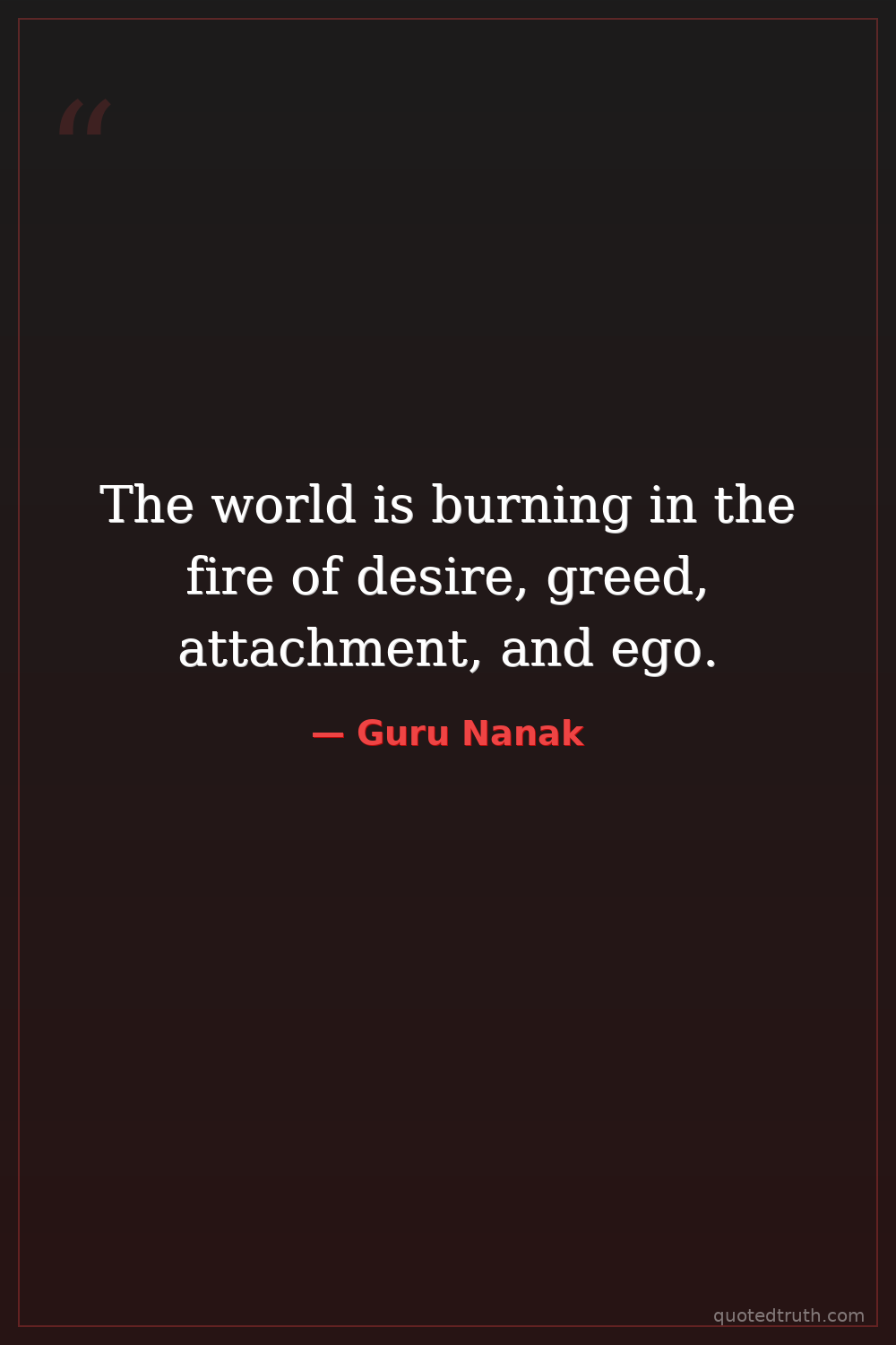 The world is burning in the fire of desire, greed, attachment, and ego.