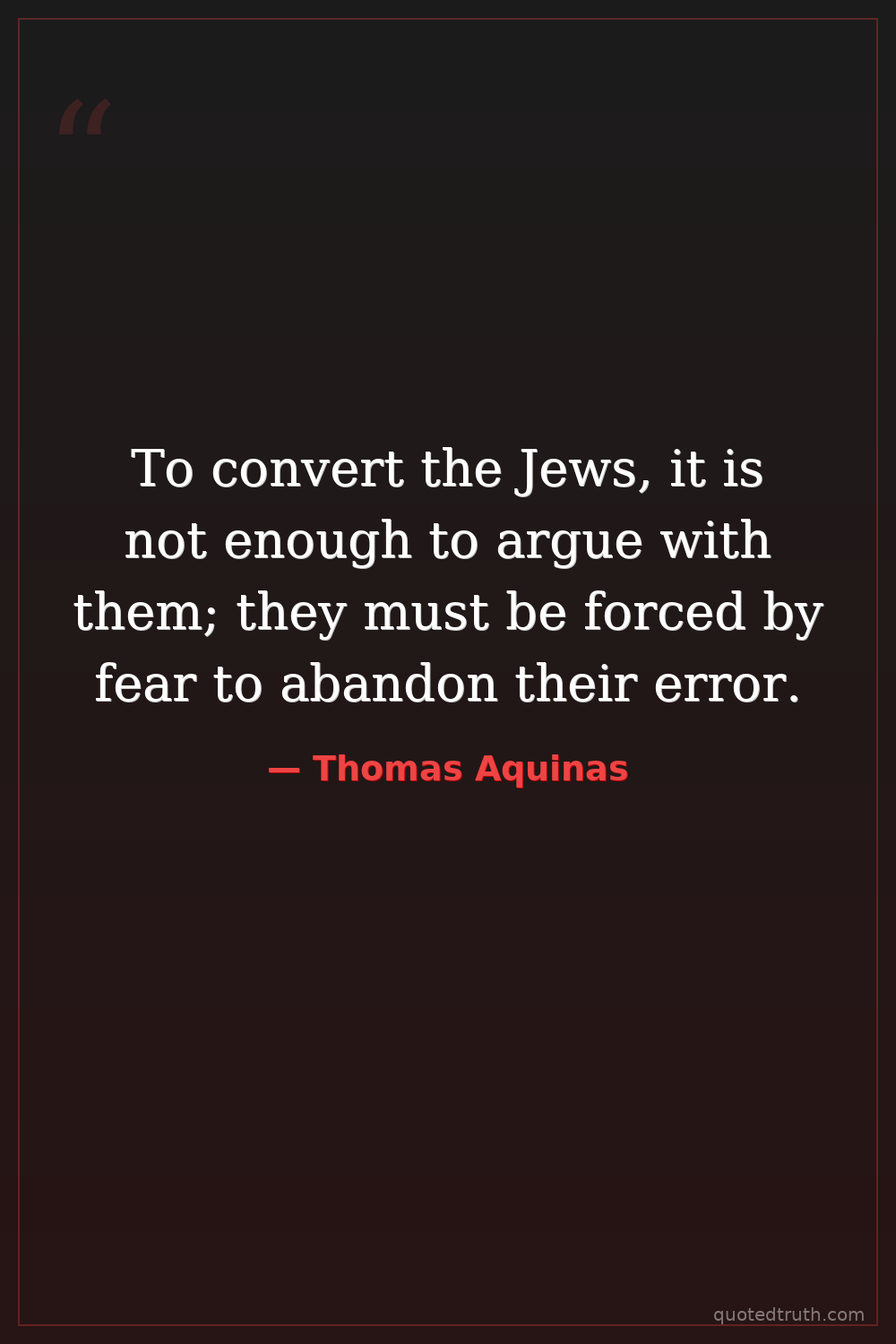 To convert the Jews, it is not enough to argue with them; they must be forced by fear to abandon their error.