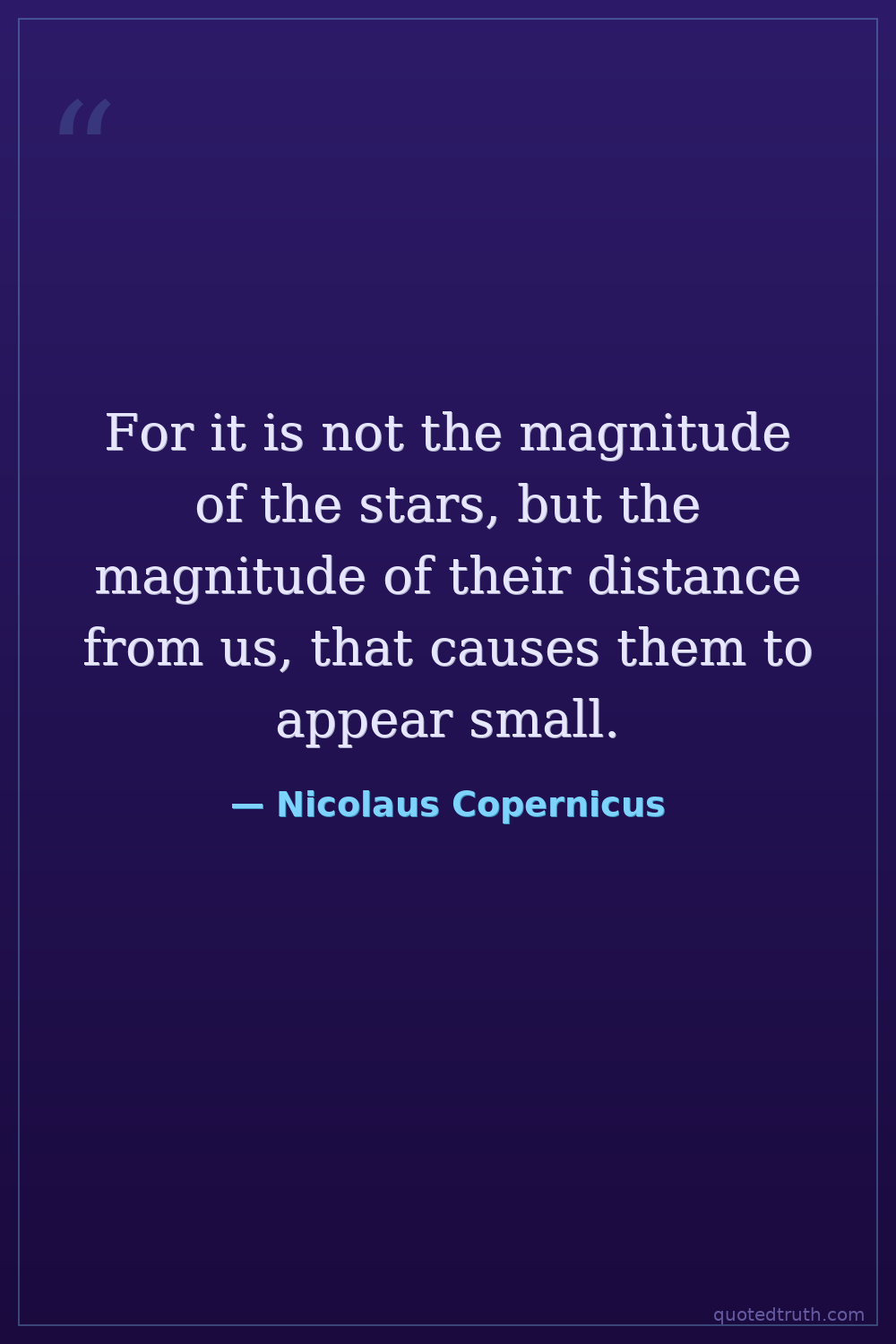 For it is not the magnitude of the stars, but the magnitude of their distance from us, that causes them to appear small.