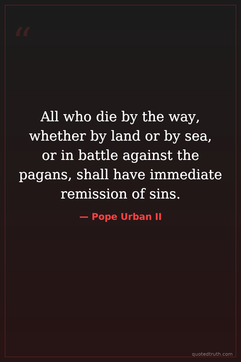 All who die by the way, whether by land or by sea, or in battle against the pagans, shall have immediate remission of sins.