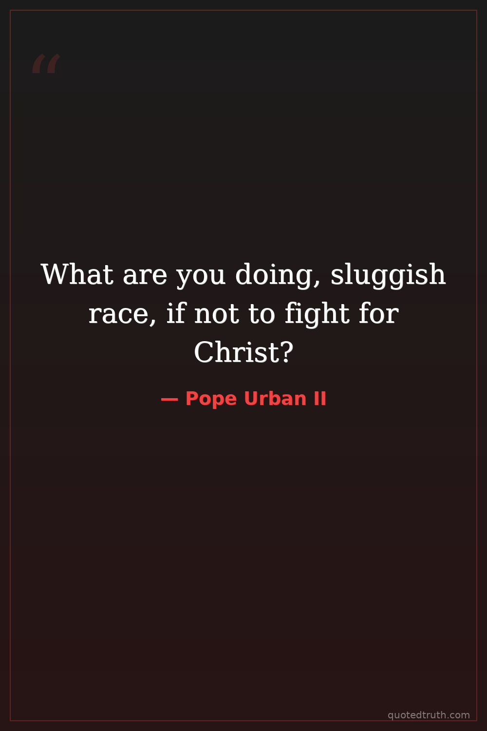 What are you doing, sluggish race, if not to fight for Christ?