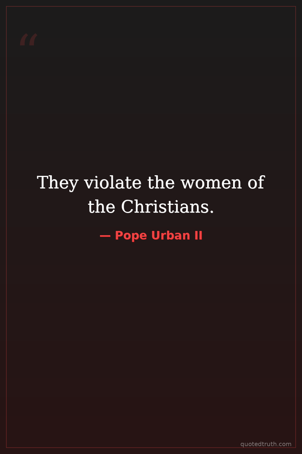 Shocking"Oh, what a disgrace if such a despised and base race, which worships demons, should conquer a people which has the faith of omnipotent God and has been made glorious with the name of Christ!"