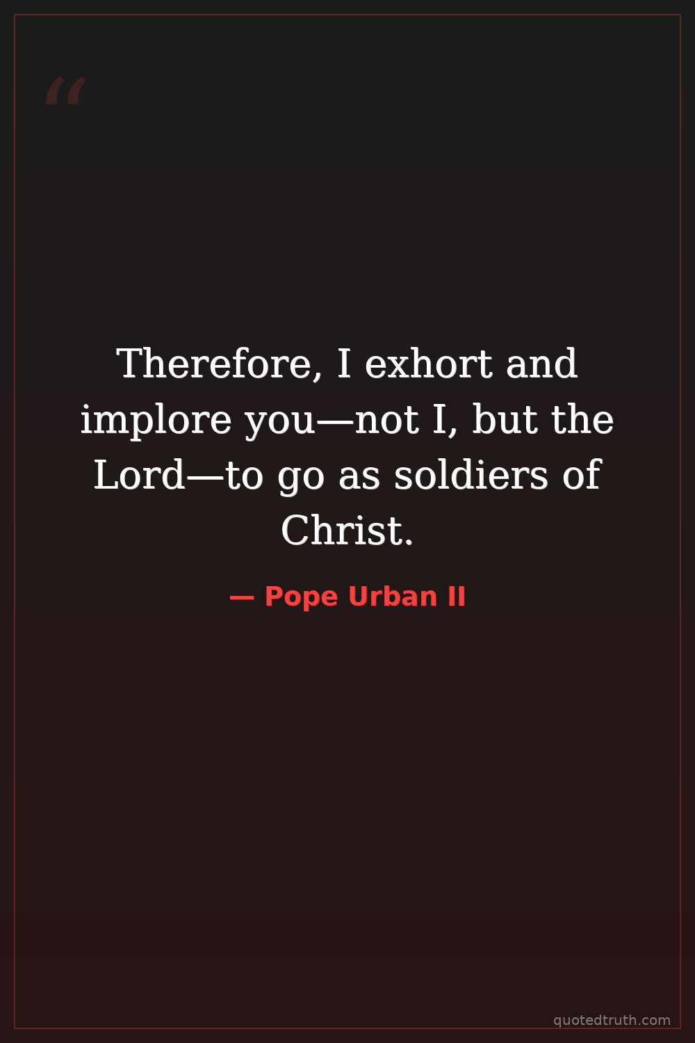 Shocking"We desire that you, with all the faithful, should hasten to the aid of the Christians, and strive to deliver them from the hands of the pagans."