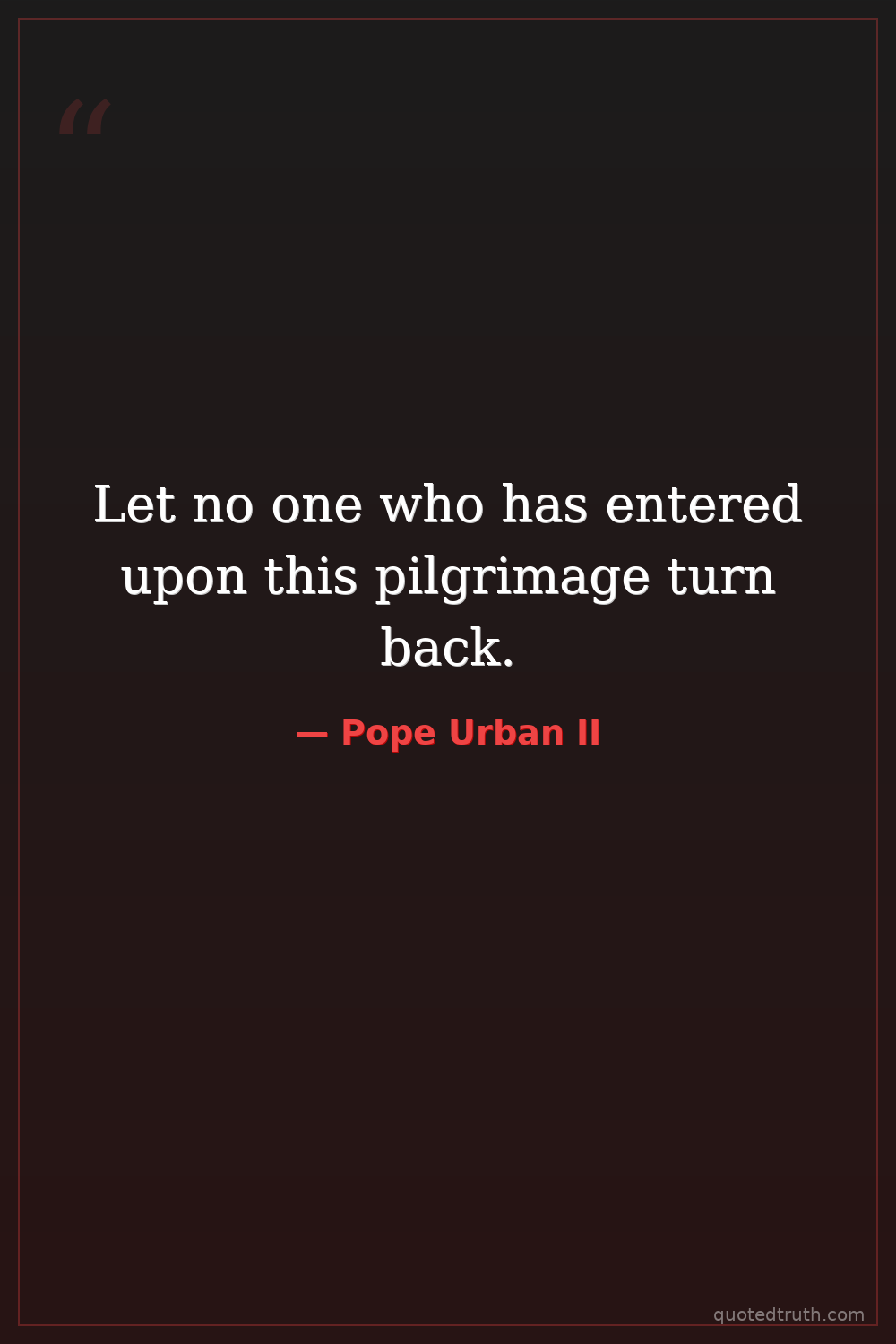 Let no one who has entered upon this pilgrimage turn back.