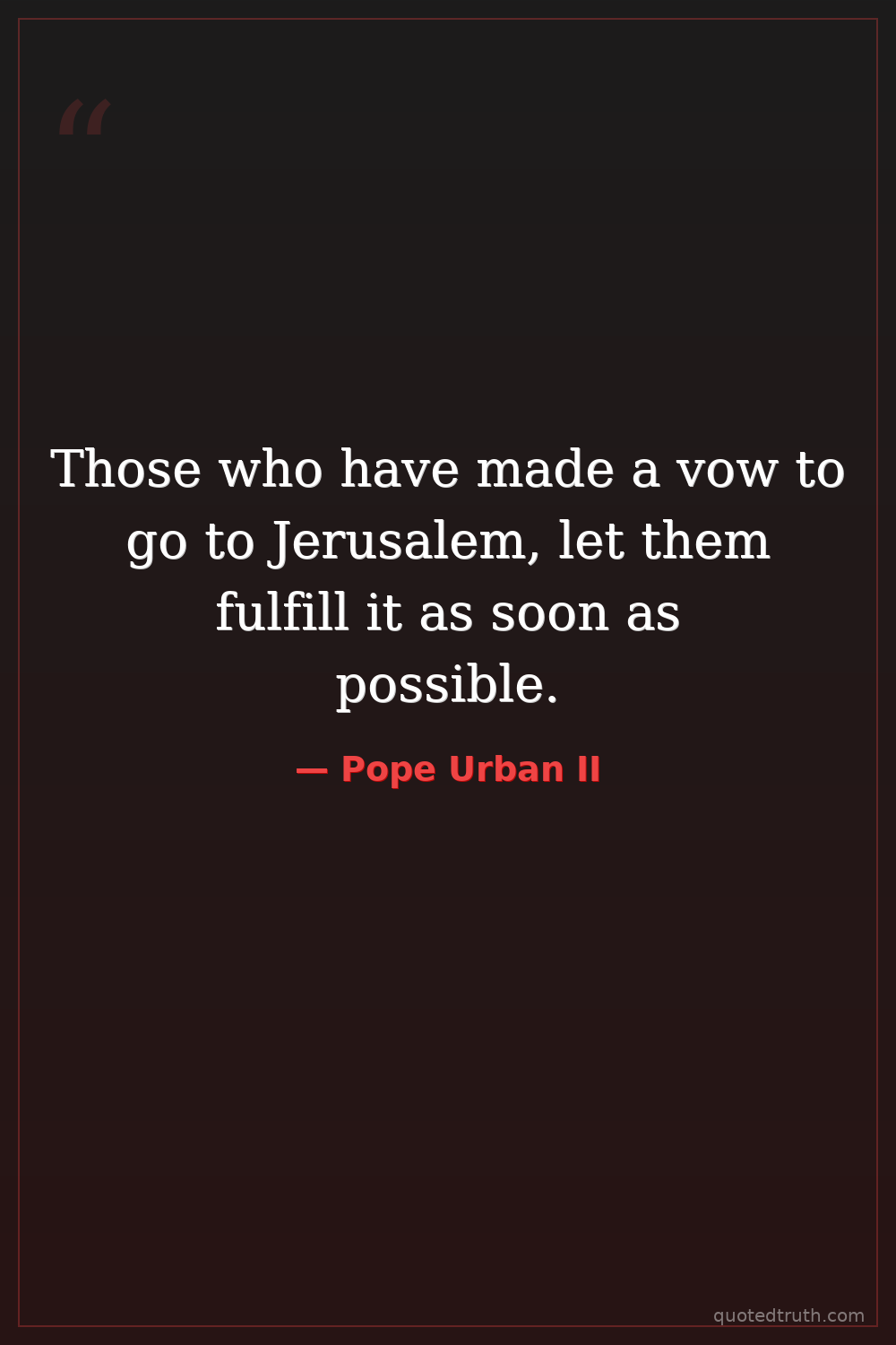 Those who have made a vow to go to Jerusalem, let them fulfill it as soon as possible.