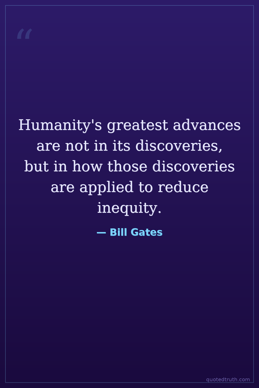 Humanity's greatest advances are not in its discoveries, but in how those discoveries are applied to reduce inequity.