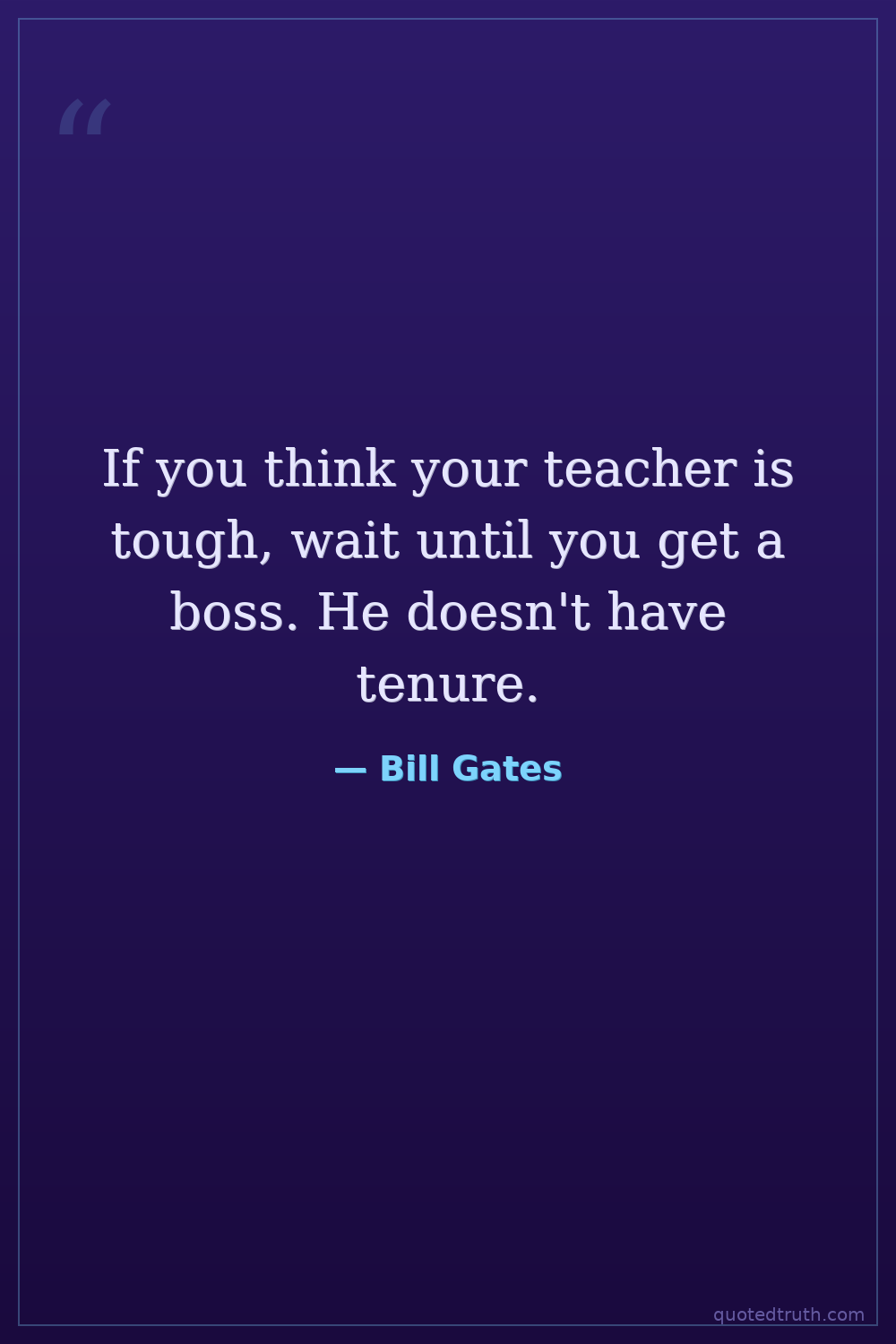If you think your teacher is tough, wait until you get a boss. He doesn't have tenure.