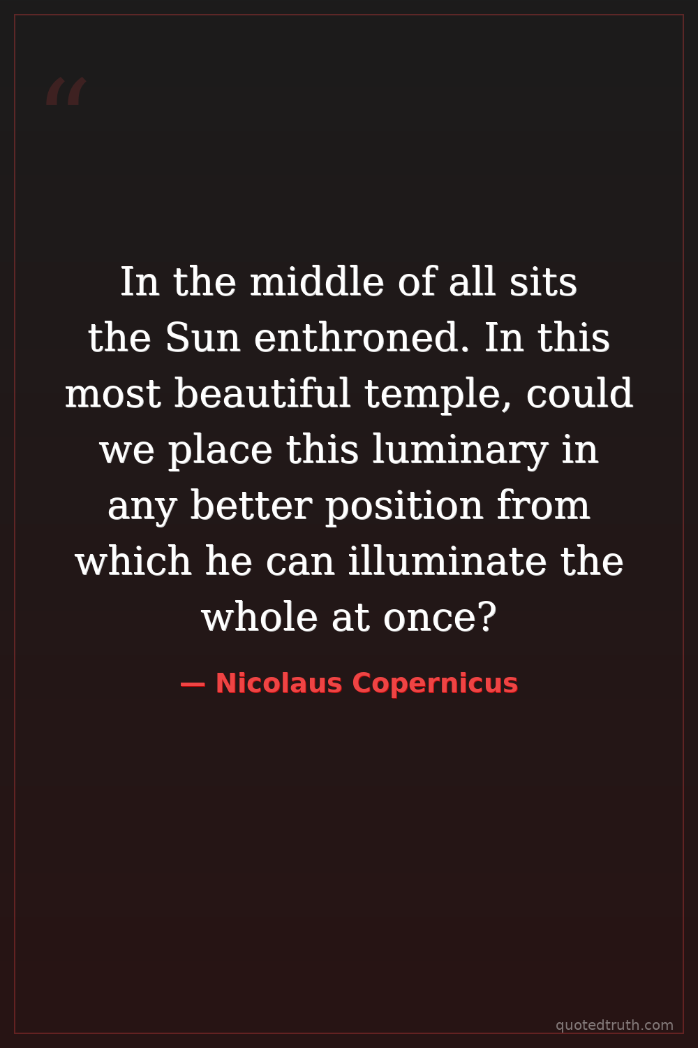 In the middle of all sits the Sun enthroned. In this most beautiful temple, could we place this luminary in any better position from which he can illuminate the whole at once?