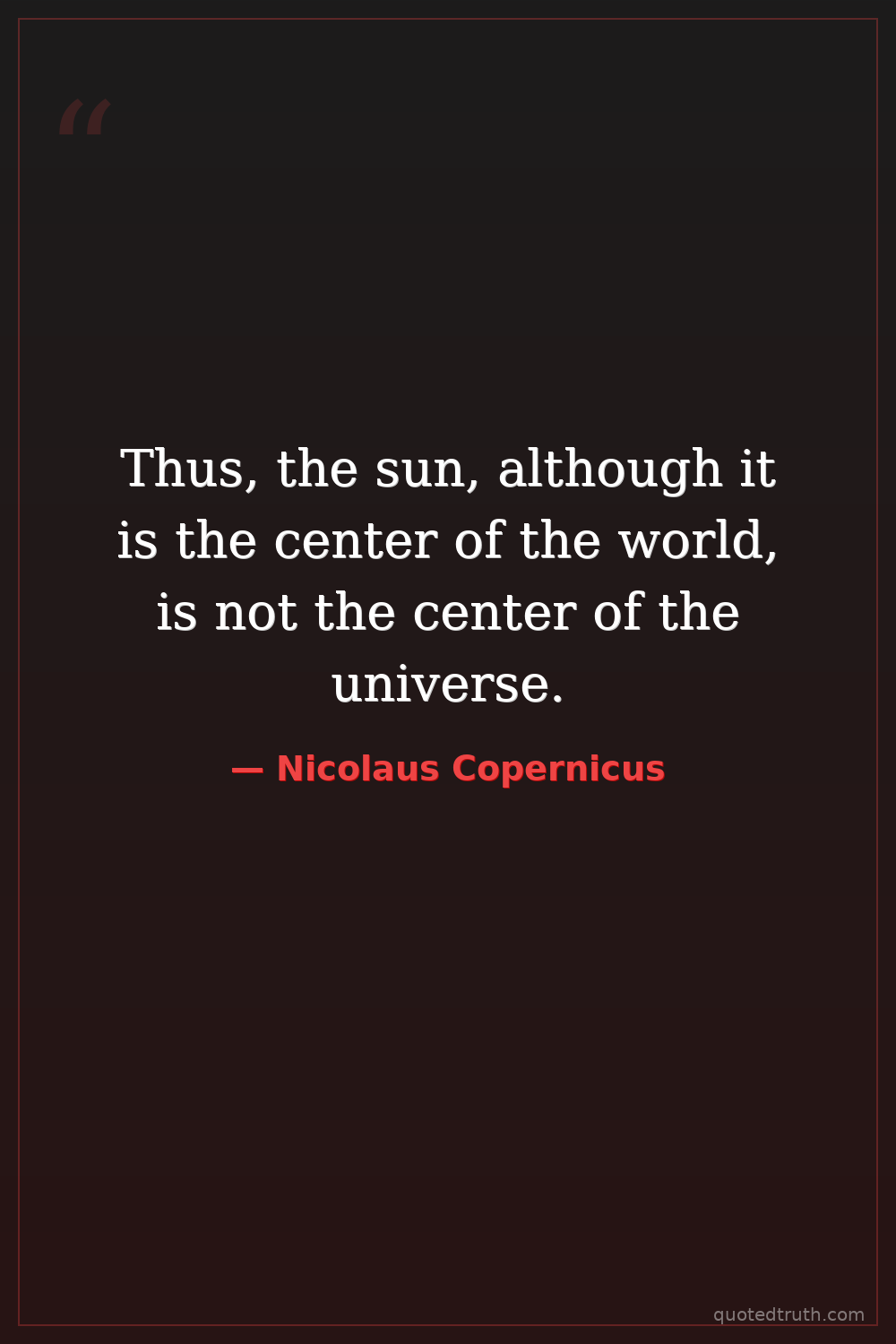 Thus, the sun, although it is the center of the world, is not the center of the universe.