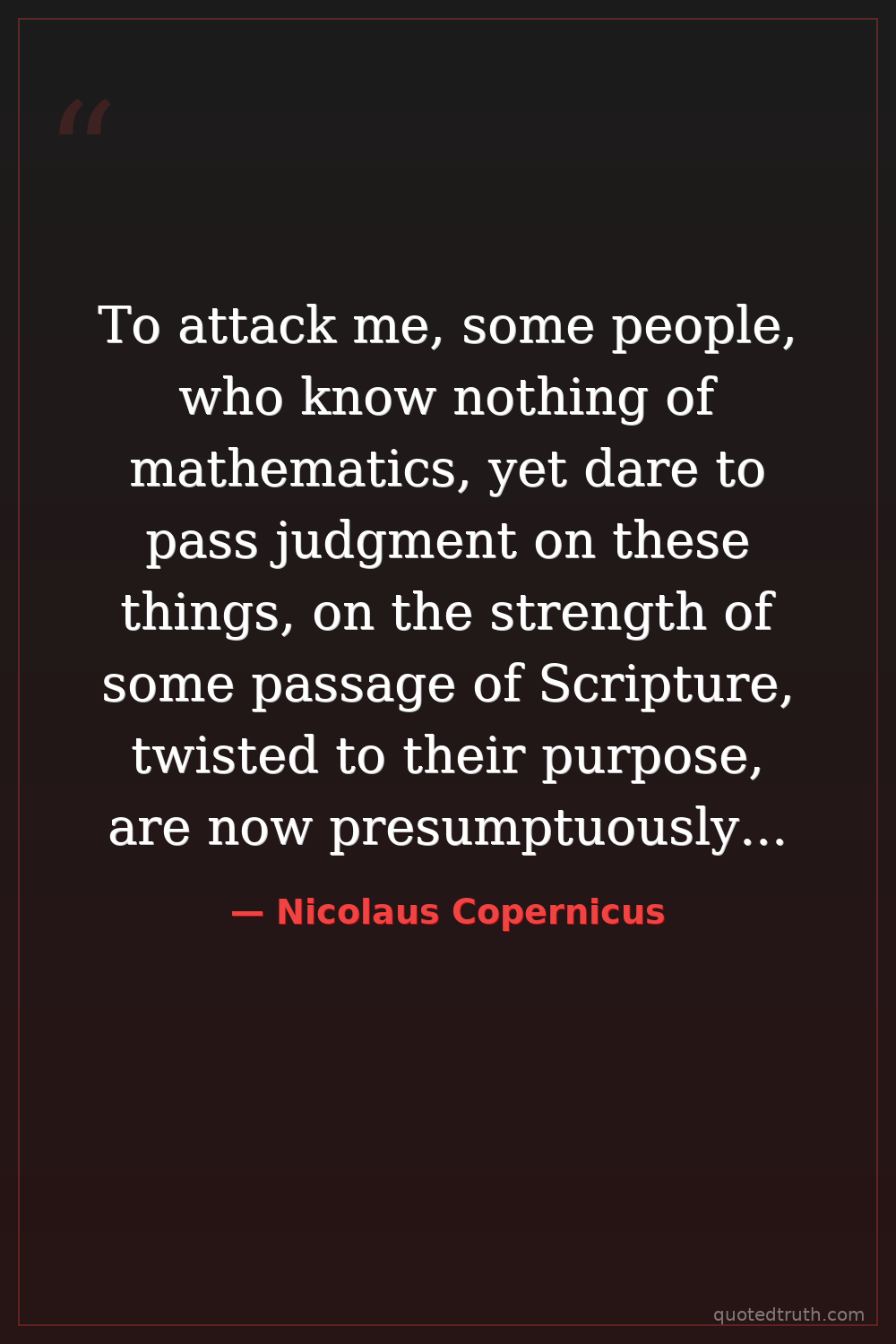To attack me, some people, who know nothing of mathematics, yet dare to pass judgment on these things, on the strength of some passage of Scripture, twisted to their purpose, are now presumptuously attempting to condemn and censure this undertaking of mine.