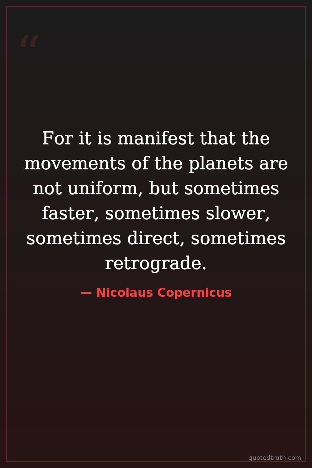 For it is manifest that the movements of the planets are not uniform, but sometimes faster, sometimes slower, sometimes direct, sometimes retrograde.