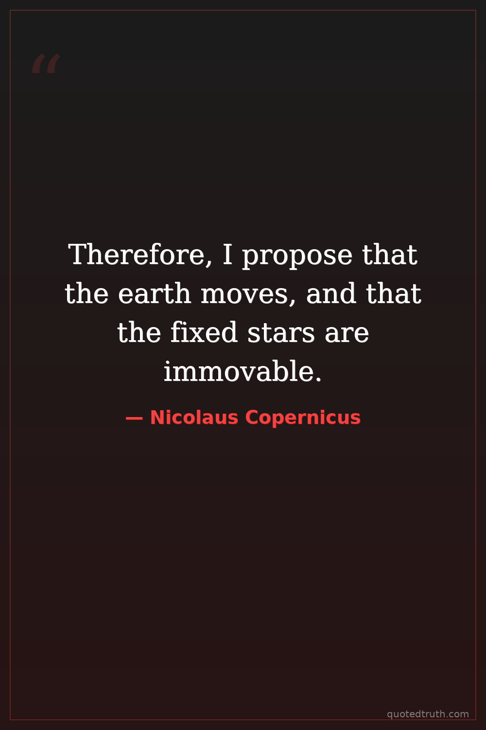 Therefore, I propose that the earth moves, and that the fixed stars are immovable.