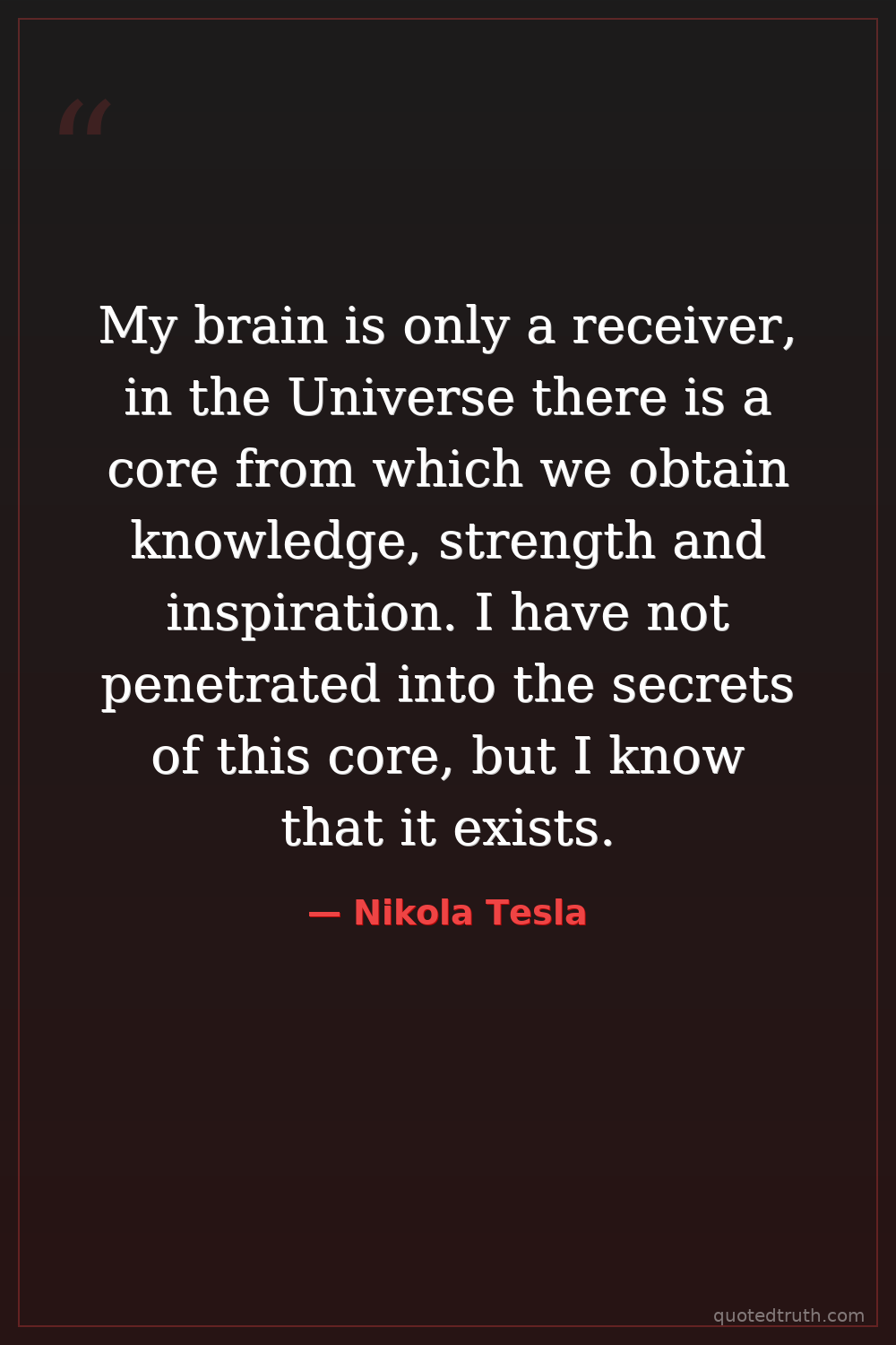 My brain is only a receiver, in the Universe there is a core from which we obtain knowledge, strength and inspiration. I have not penetrated into the secrets of this core, but I know that it exists.