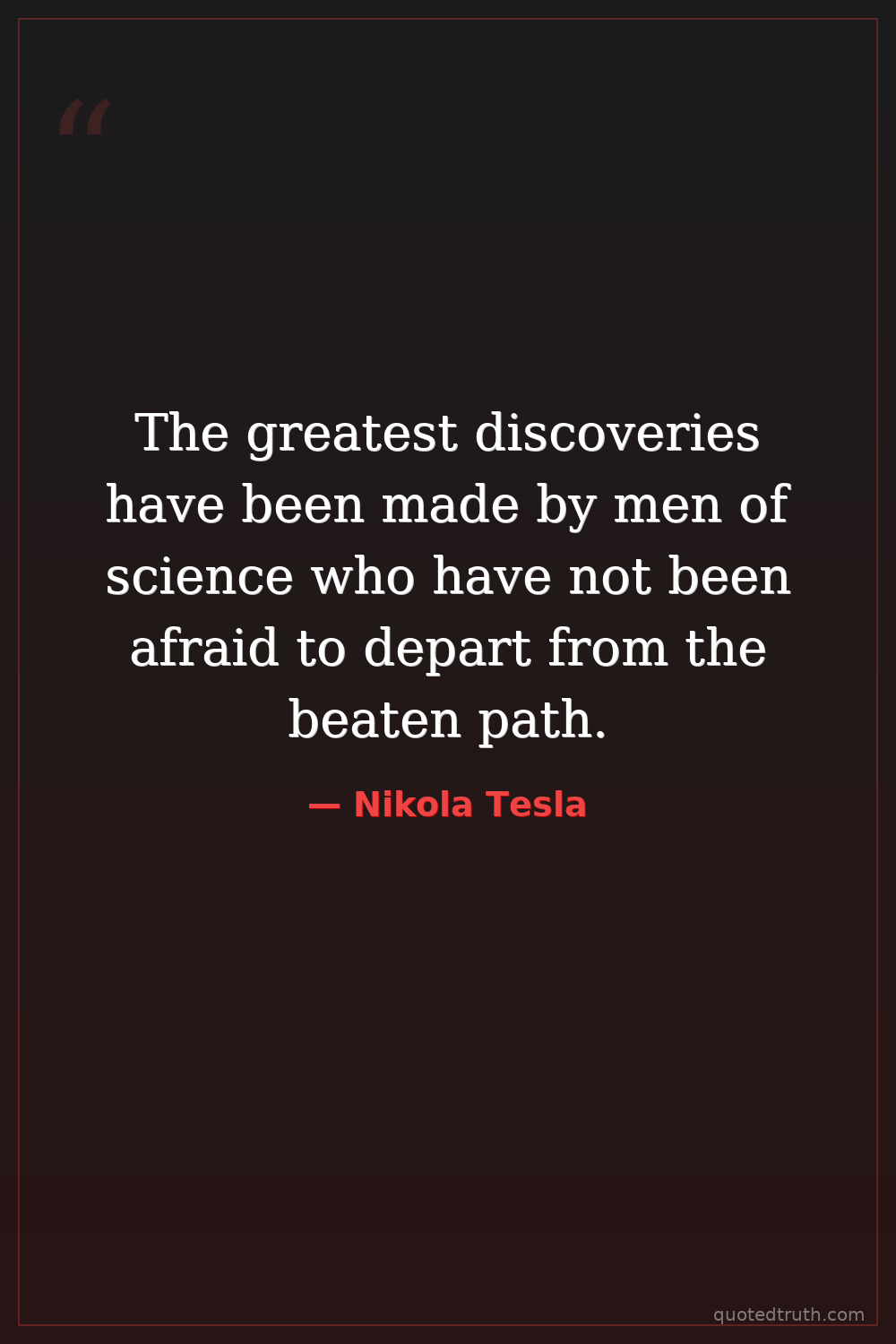 The greatest discoveries have been made by men of science who have not been afraid to depart from the beaten path.