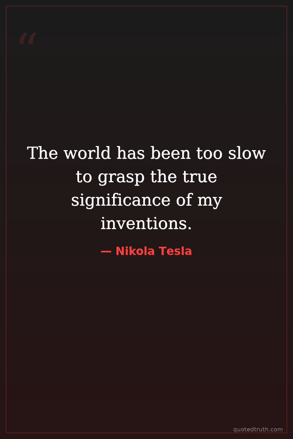 Philosophical"I have not invented a 'death ray'. I don't need a 'death ray' to destroy an army. I can simply create a vibratory force that would shatter the earth."