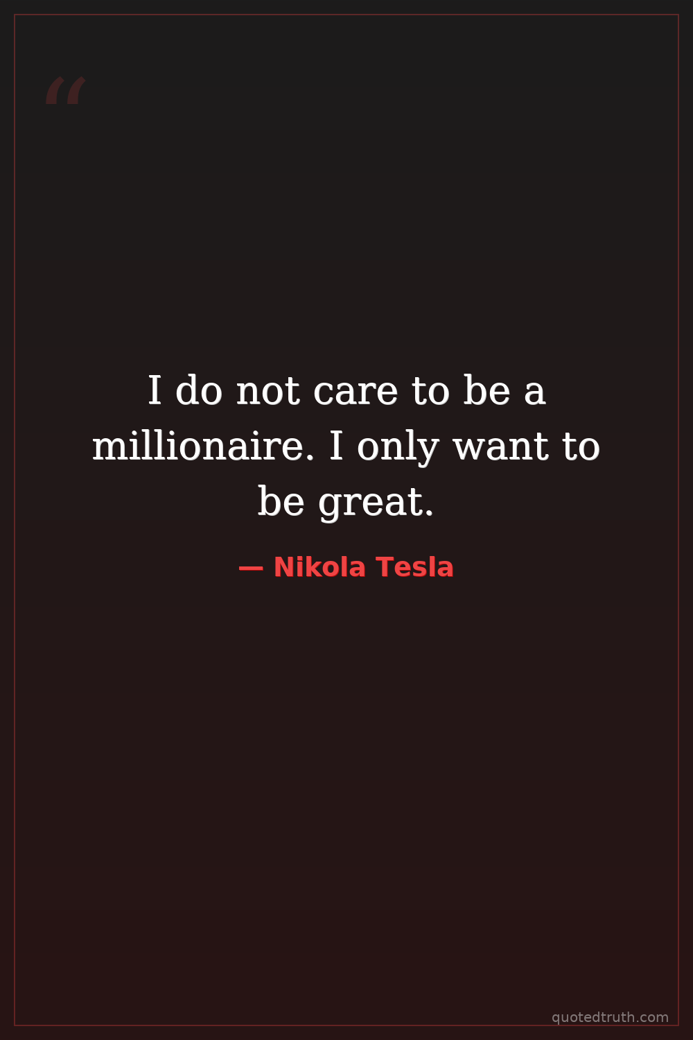 I do not care to be a millionaire. I only want to be great.