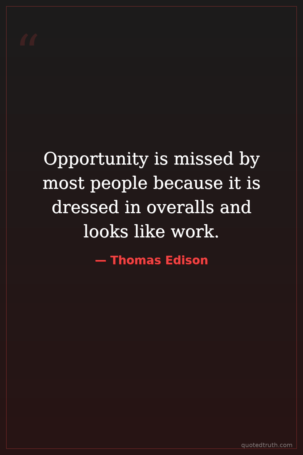 Opportunity is missed by most people because it is dressed in overalls and looks like work.