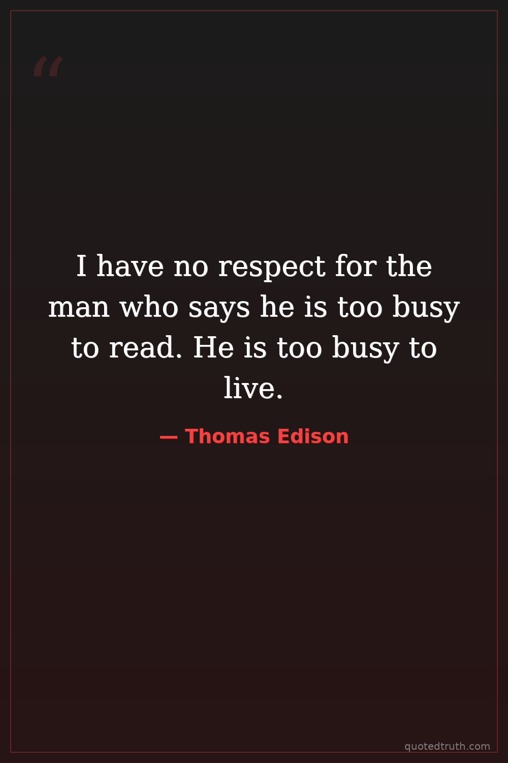 I have no respect for the man who says he is too busy to read. He is too busy to live.