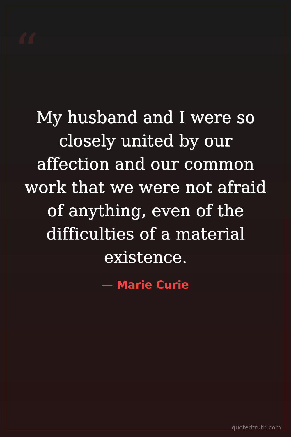 My husband and I were so closely united by our affection and our common work that we were not afraid of anything, even of the difficulties of a material existence.