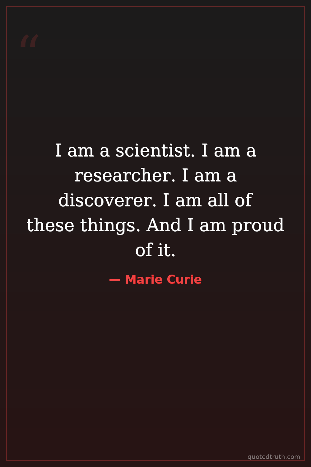 I am a scientist. I am a researcher. I am a discoverer. I am all of these things. And I am proud of it.
