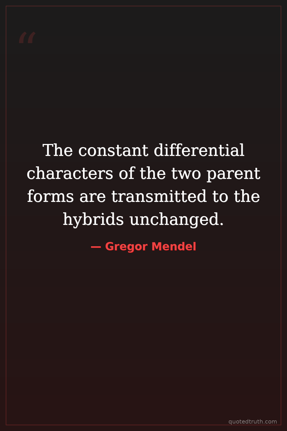 The constant differential characters of the two parent forms are transmitted to the hybrids unchanged.