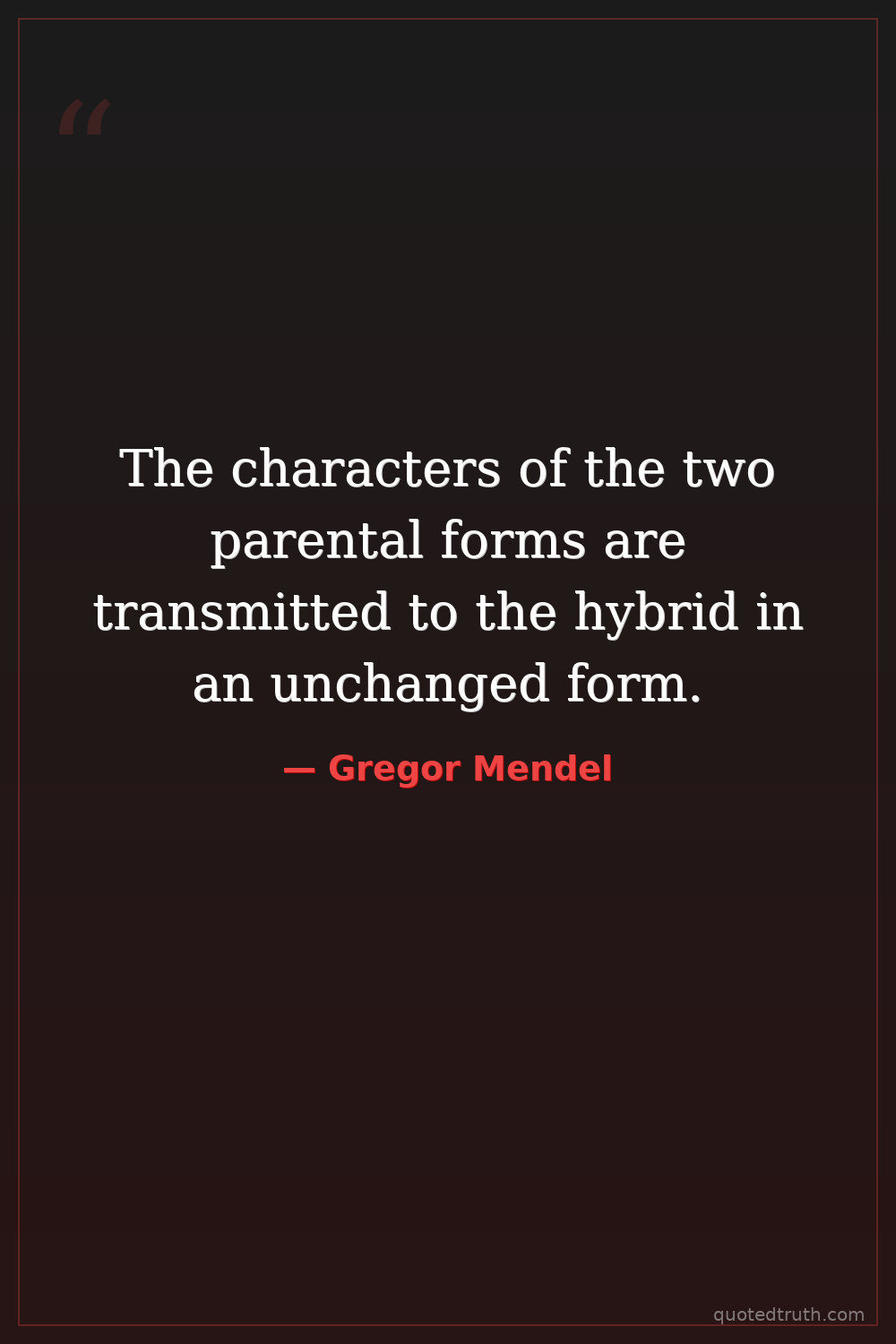 Strange & Unusual"The experiments lead to the conclusion that the characters of the two parental forms are transmitted to the hybrid unchanged."