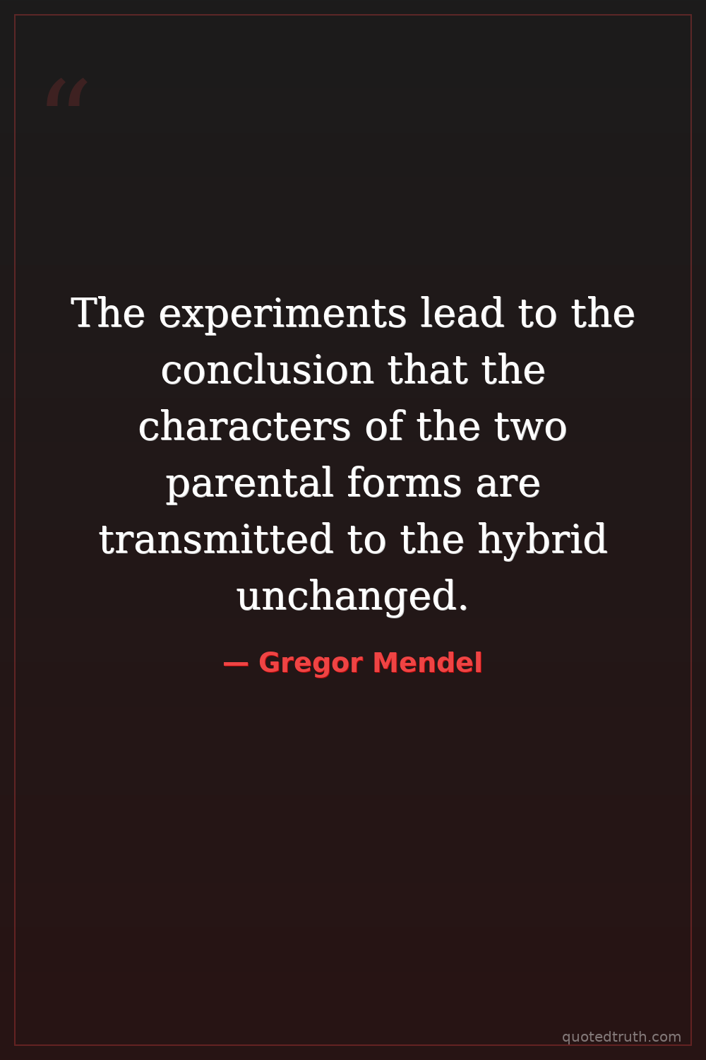 The experiments lead to the conclusion that the characters of the two parental forms are transmitted to the hybrid unchanged.