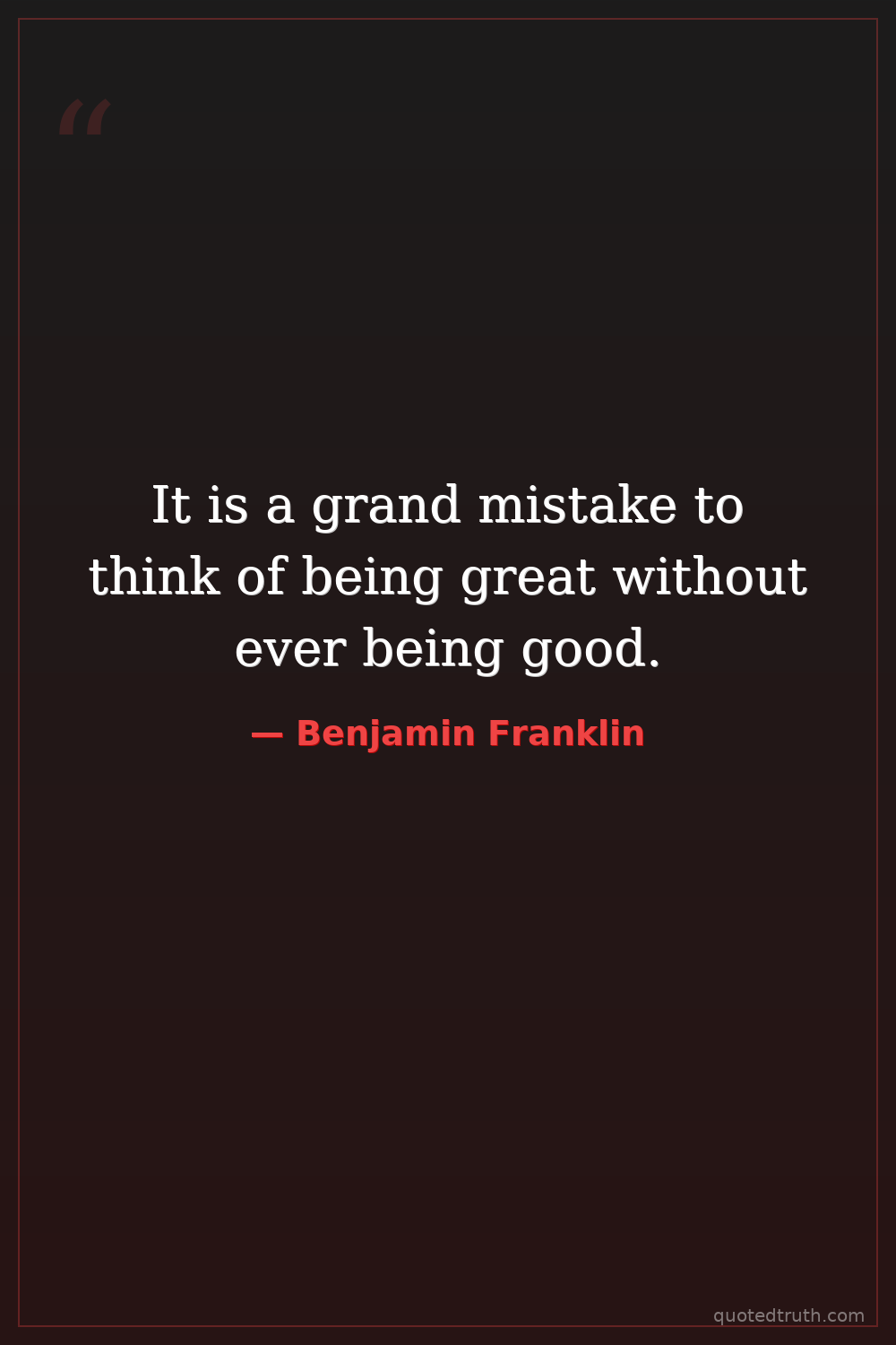It is a grand mistake to think of being great without ever being good.