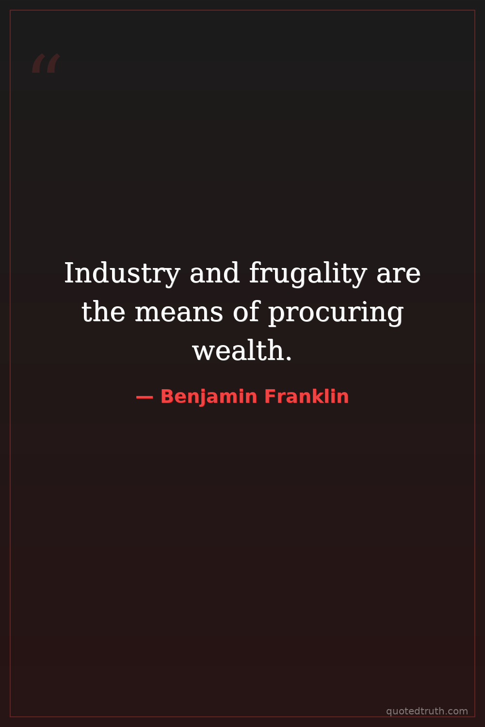 Industry and frugality are the means of procuring wealth.