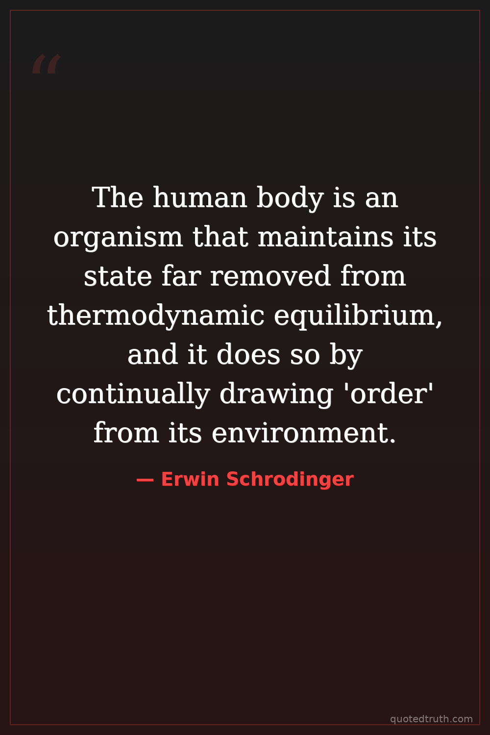 The human body is an organism that maintains its state far removed from thermodynamic equilibrium, and it does so by continually drawing 'order' from its environment.