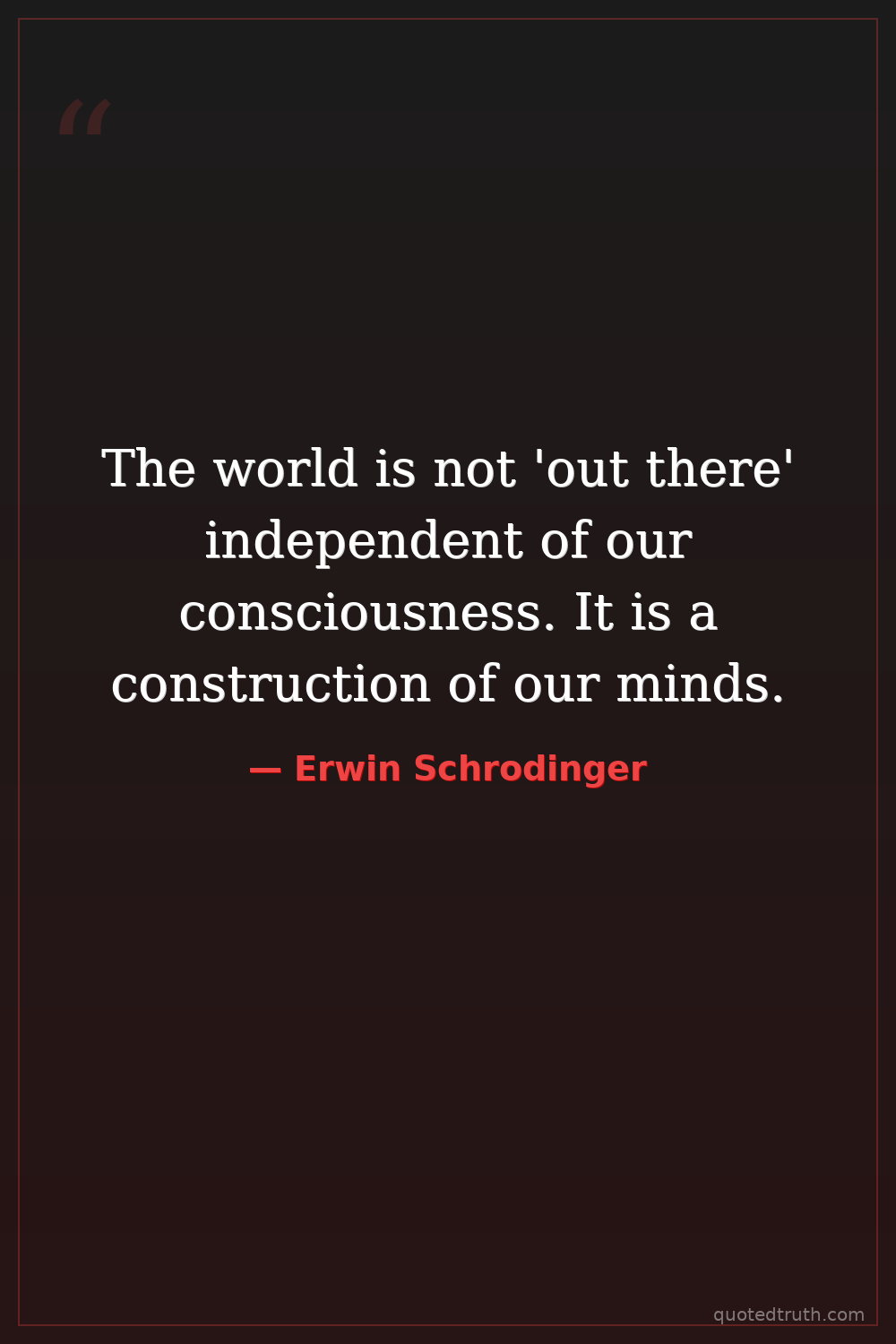 The world is not 'out there' independent of our consciousness. It is a construction of our minds.