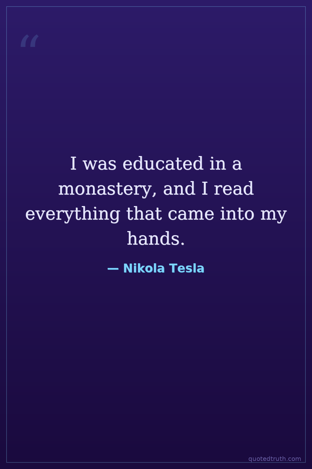 I was educated in a monastery, and I read everything that came into my hands.